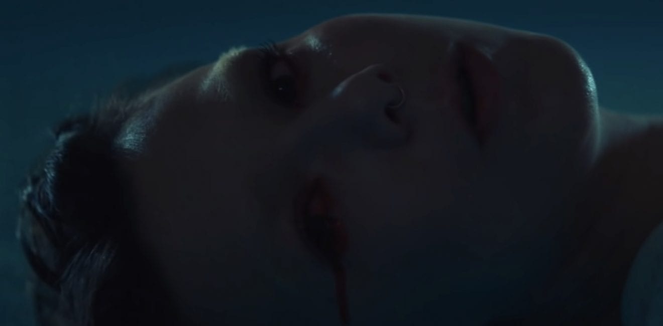 Perhaps surpassingly, the music video doesn’t feature flowers or a springtime scene. Instead, Nanna floats on the surface of a darkly lit swimming pool, tears of blood dripping down her cheeks. With supernatural ability, she sits up on and sometimes stands on the water. Later, small hurricanes spiral up from the pool, a choreographed backdrop as Nanna sings to the camera. It’s subtly magical, conjuring up imagery of mermaids, sea monsters, or the 2017 movie, The Shape Of Water.